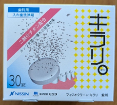 安全性の高い二酸化チタンを配合し、その触媒効果でヤニや茶渋などの着色汚れやカンジダ菌を洗浄・除菌します。義歯を痛めない中性タイプとなっているため、金属床義歯やチタン・パラジウム合金・リテーナーにも安心してお使いいただけます。